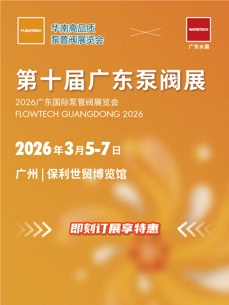 由上海荷瑞展覽有限公司、Informa Markets聯合主辦,上海荷祥會展有限公司協辦的第十屆廣東國際泵管閥展覽會(簡稱:廣東泵閥展)作為華南泵閥產業首選商貿平臺,攜手廣東水展將于2026年3月5-7日在廣州保利世貿博覽館再度啟幕!